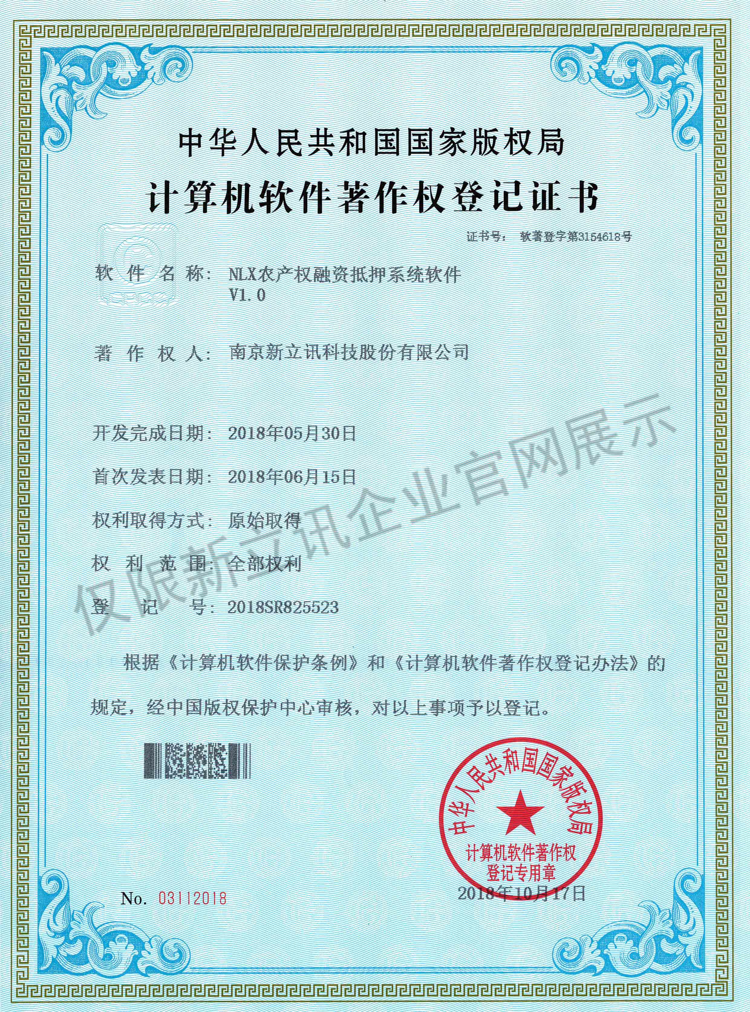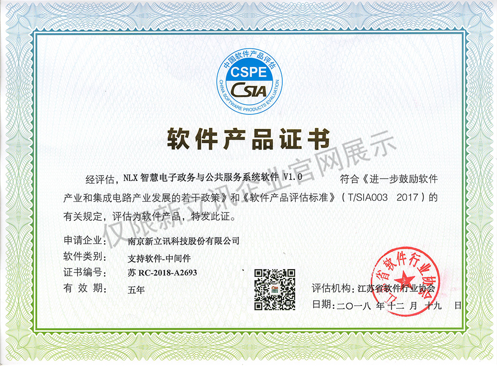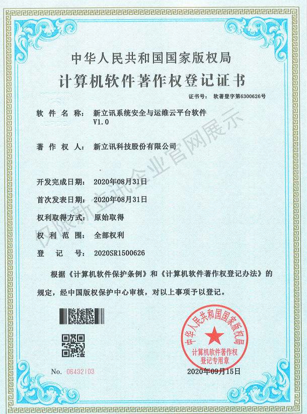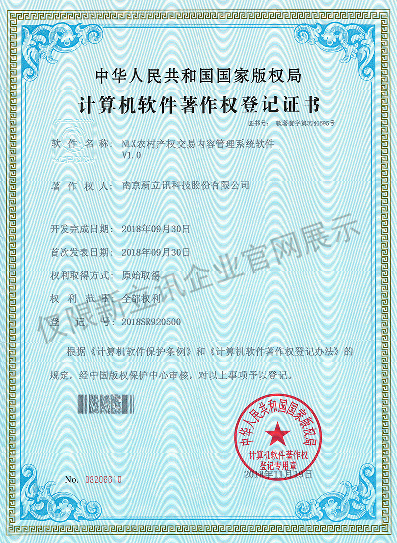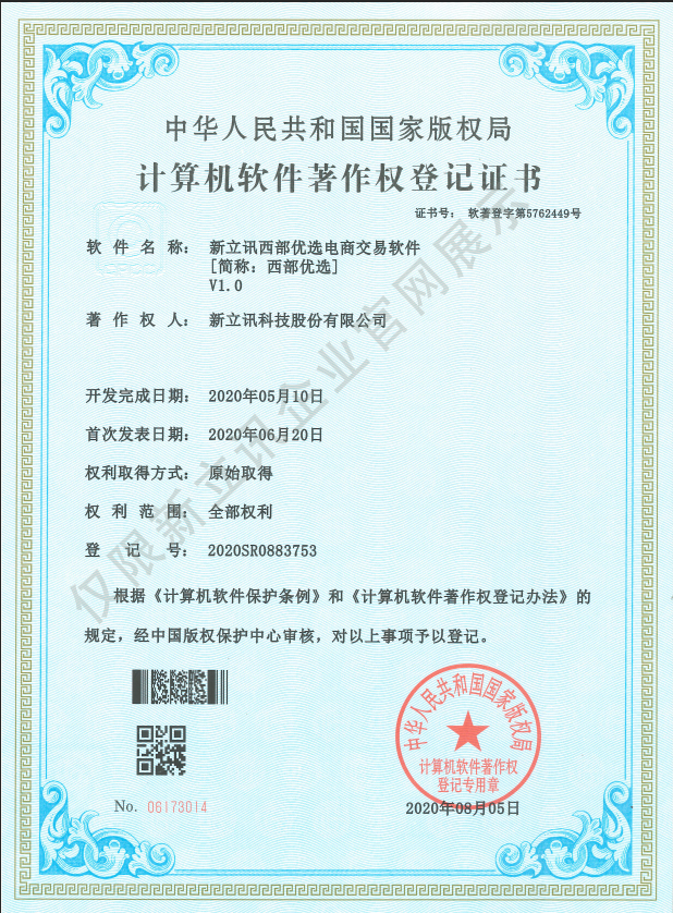 • 2020-12-28新立訊在線交易云平臺軟件V1.0軟件產品證書查看