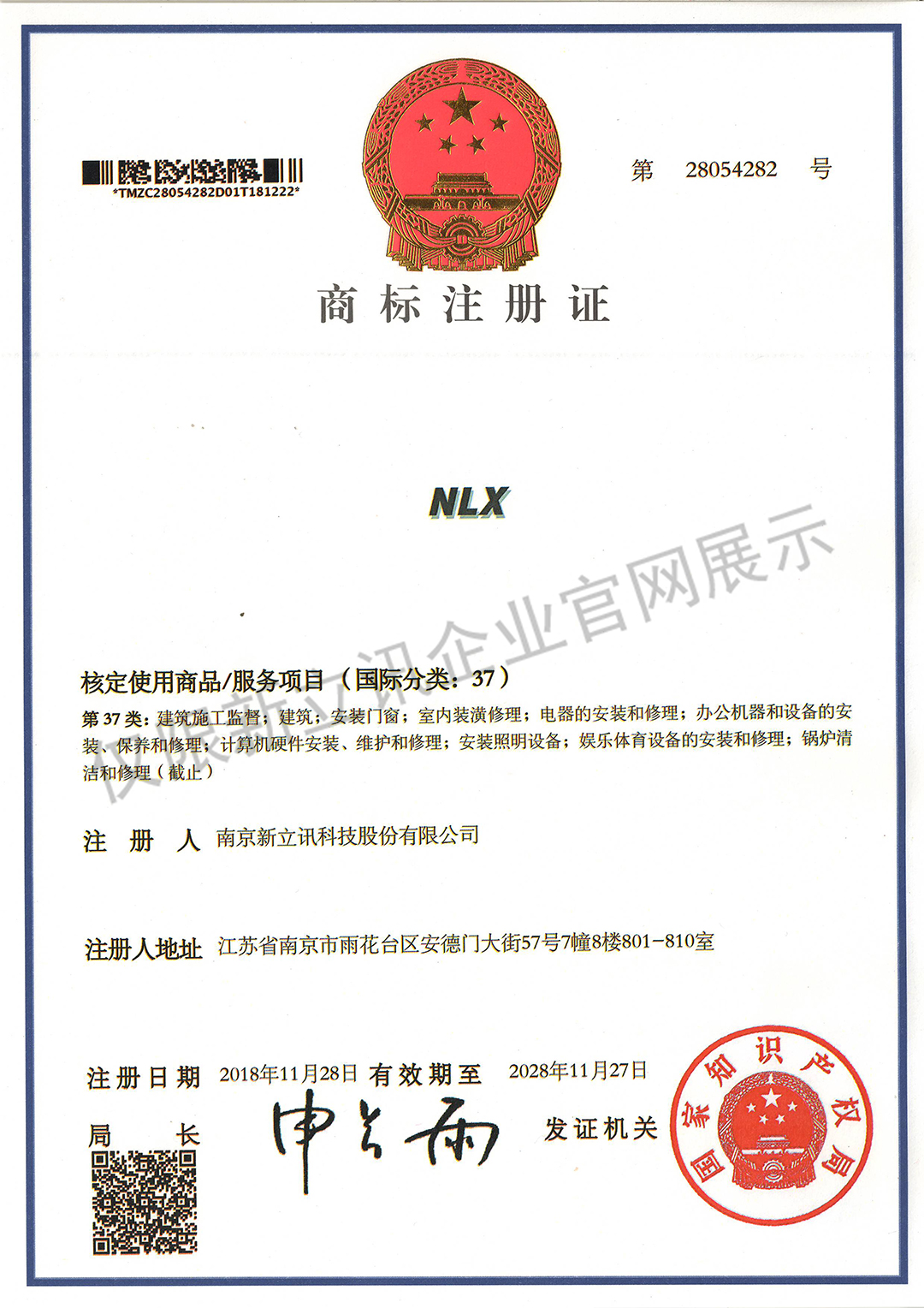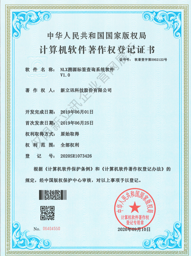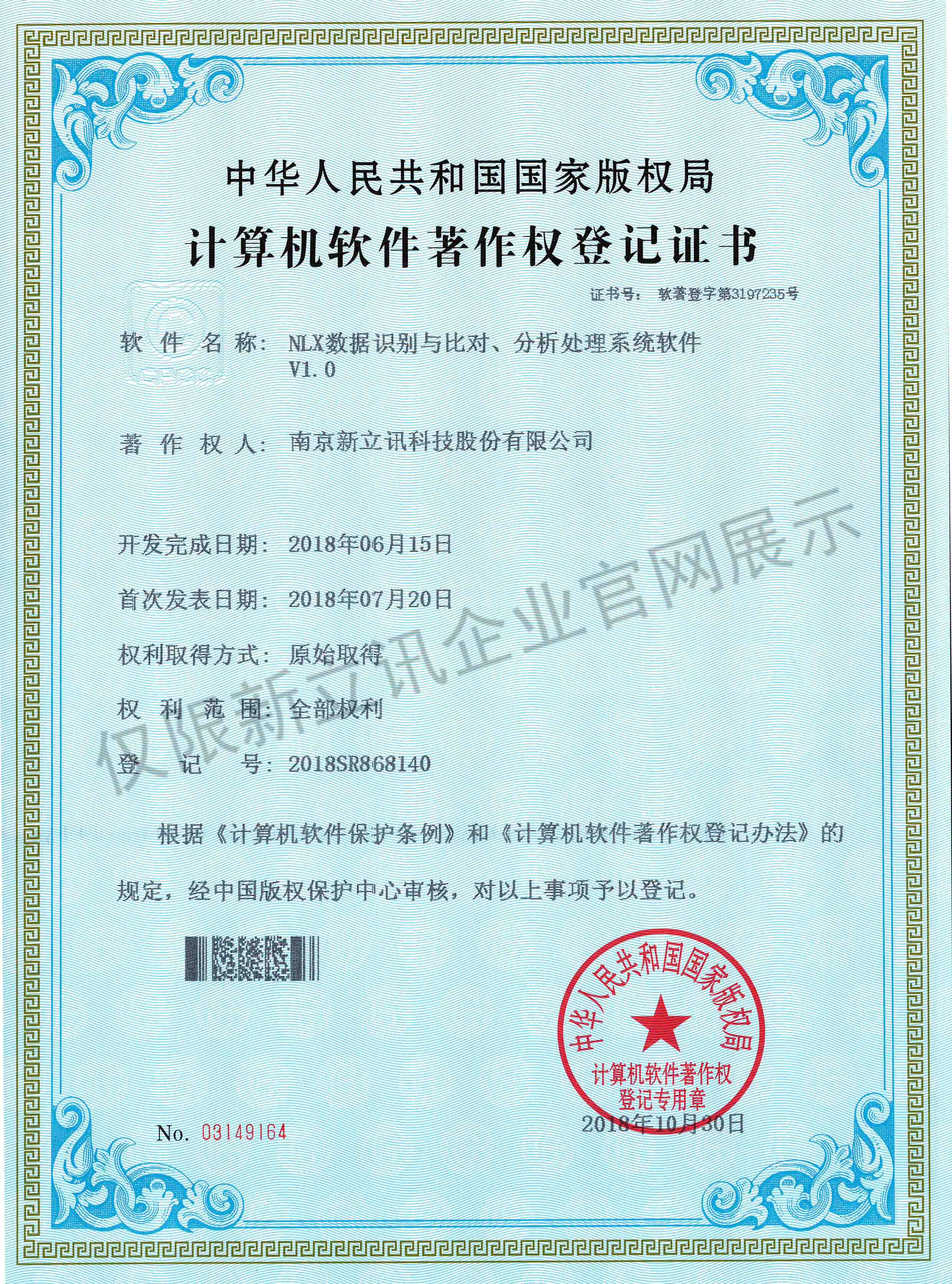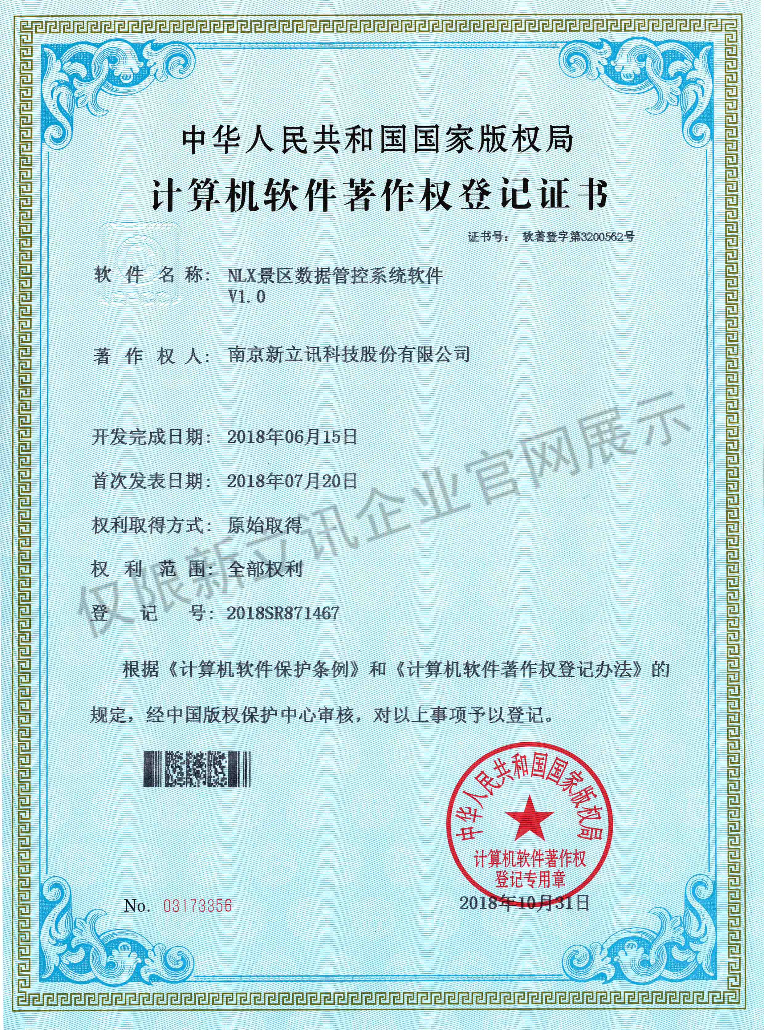 • 2016-07-20新立訊軟件著作權證書--NLX射頻門禁考勤管理系統V1.0查看