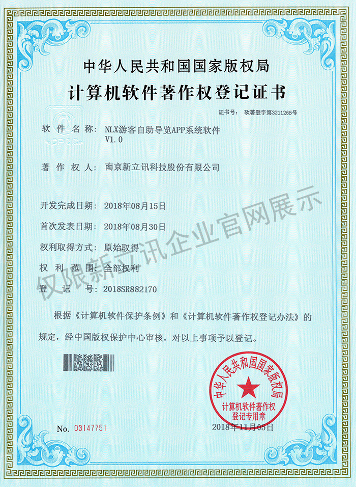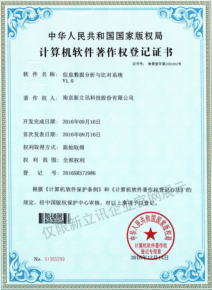 • 2016-07-20新立訊軟件著作權證書--新立訊音頻控制系統軟件V1.0查看