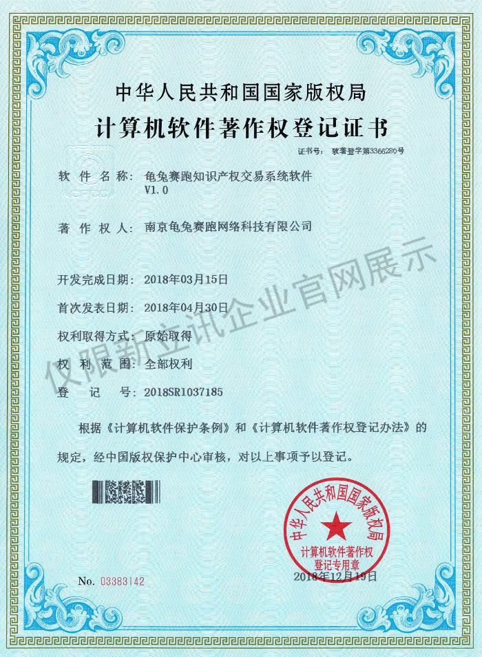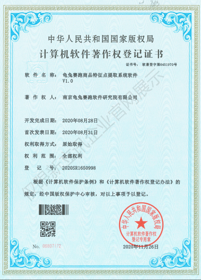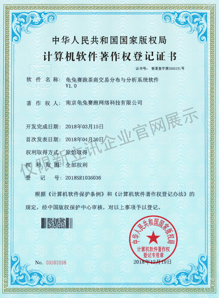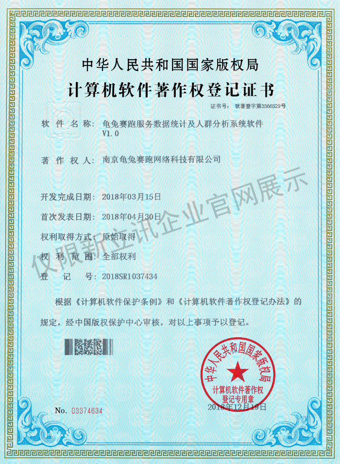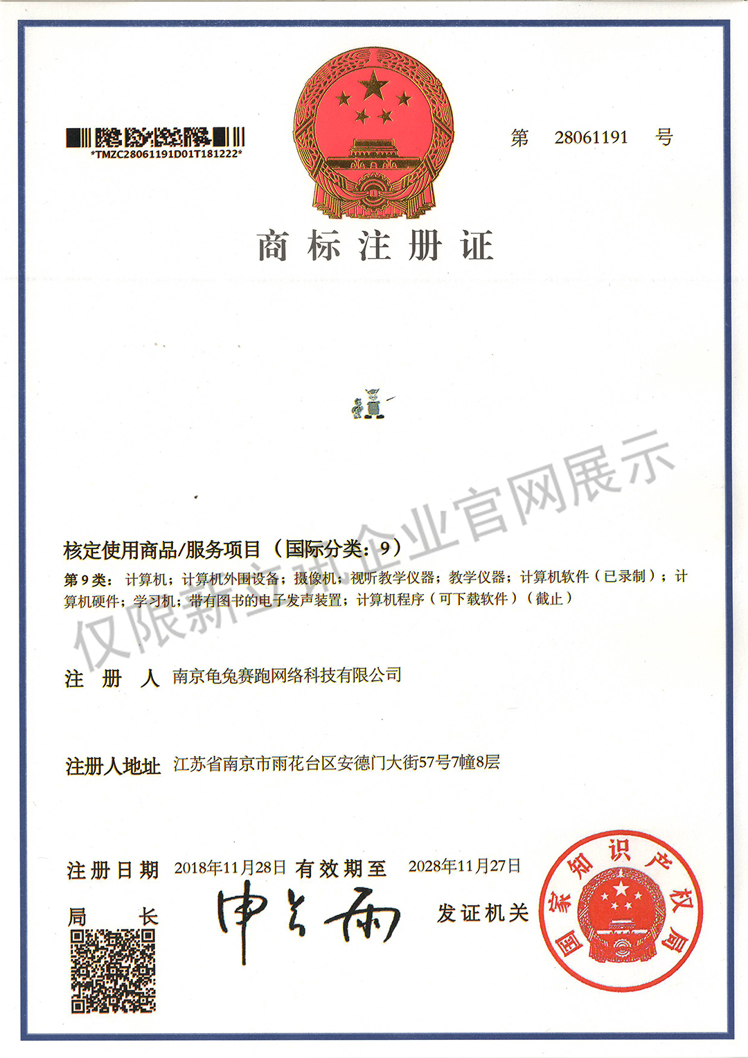 • 2016-07-20龜兔賽跑軟件著作權證書--龜兔賽跑智慧教育計算機版平臺軟件V1.0查看