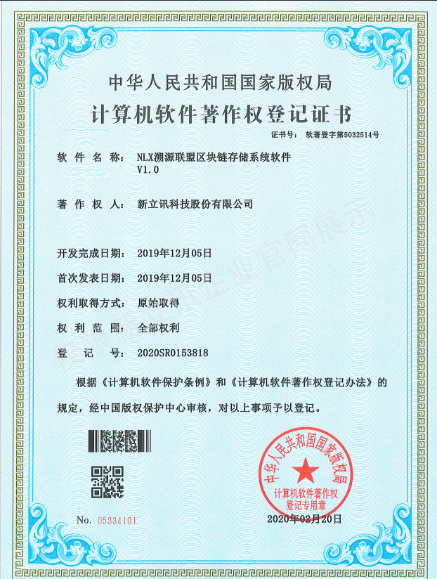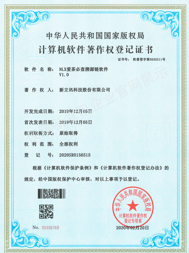 • 2020-12-28新立訊AI鑒真防偽溯源量化云平臺軟件V1.0軟件產品證書查看