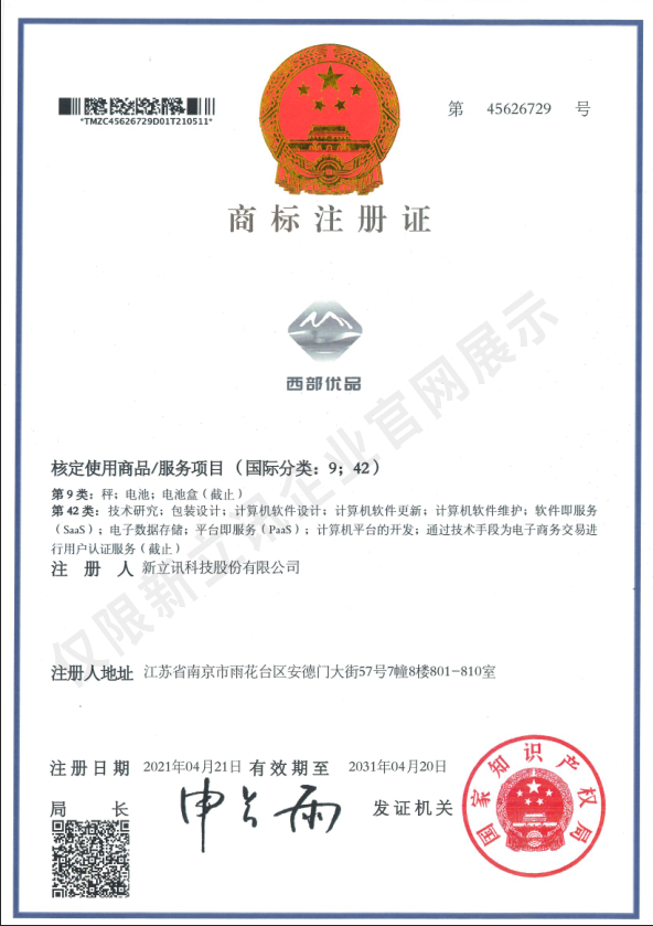 • 2021-06-04第45626729號西部優品商標注冊證(國際分類:9;42)查看