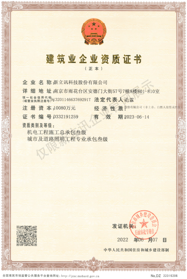 • 2022-07-01建筑機電安裝工程專業承包一級(物聯網)查看