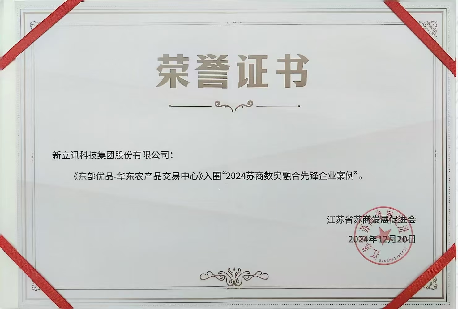 • 2024-12-23新立訊科技集團《東部優品-華東農產交易中心》入圍“2024蘇商數實融合先鋒企業案例”查看