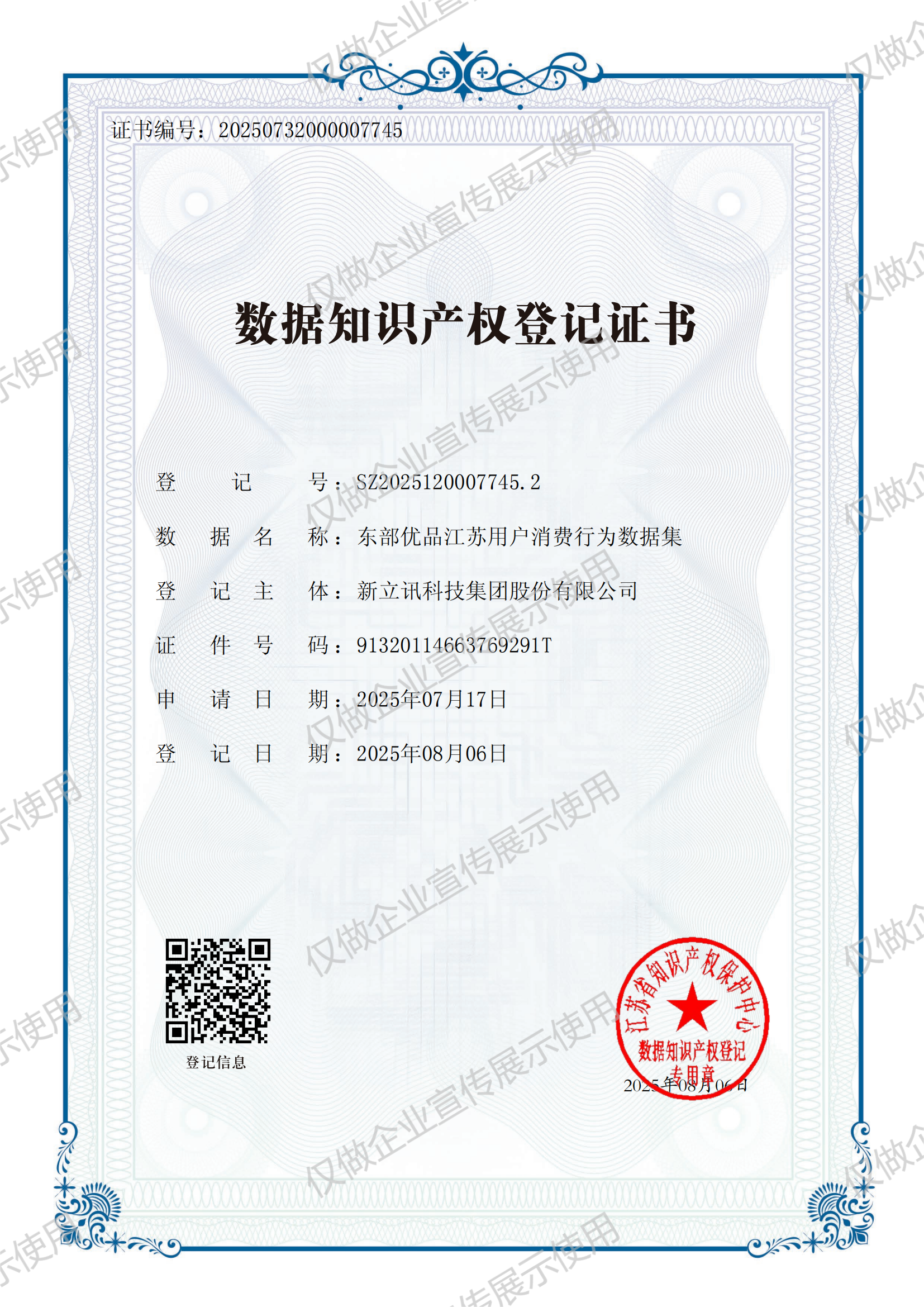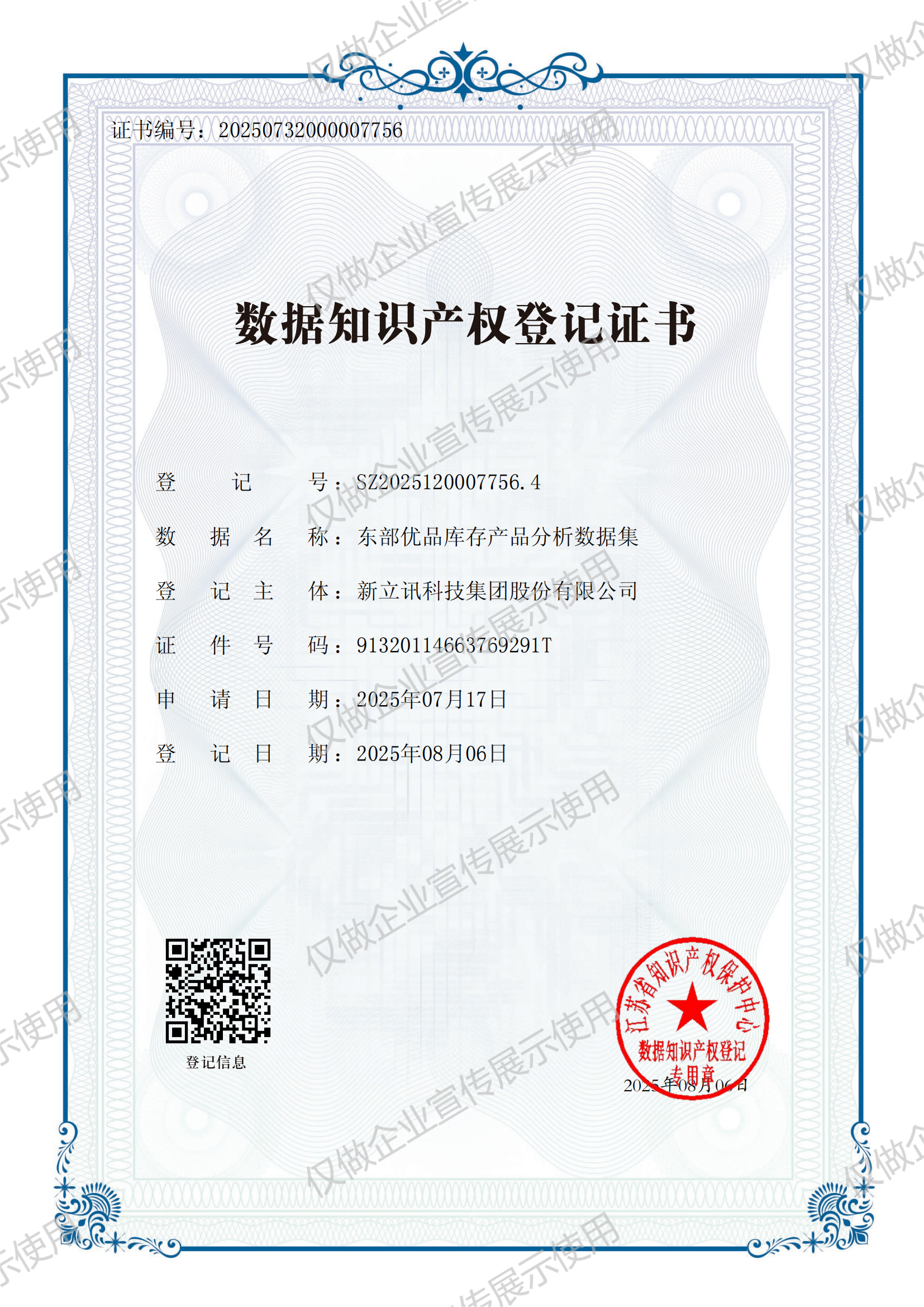 新立訊科技集團完成“農產數據集”數據知識產權登...