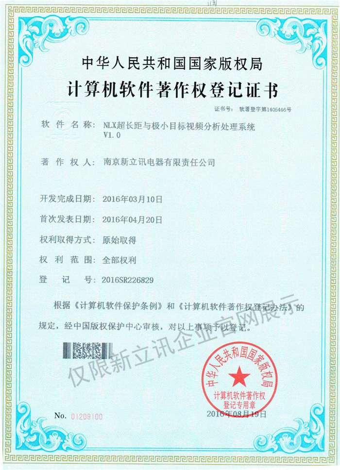 • 2016-07-20新立訊軟件著作權證書--新立訊視頻控制系統軟件V1.0查看