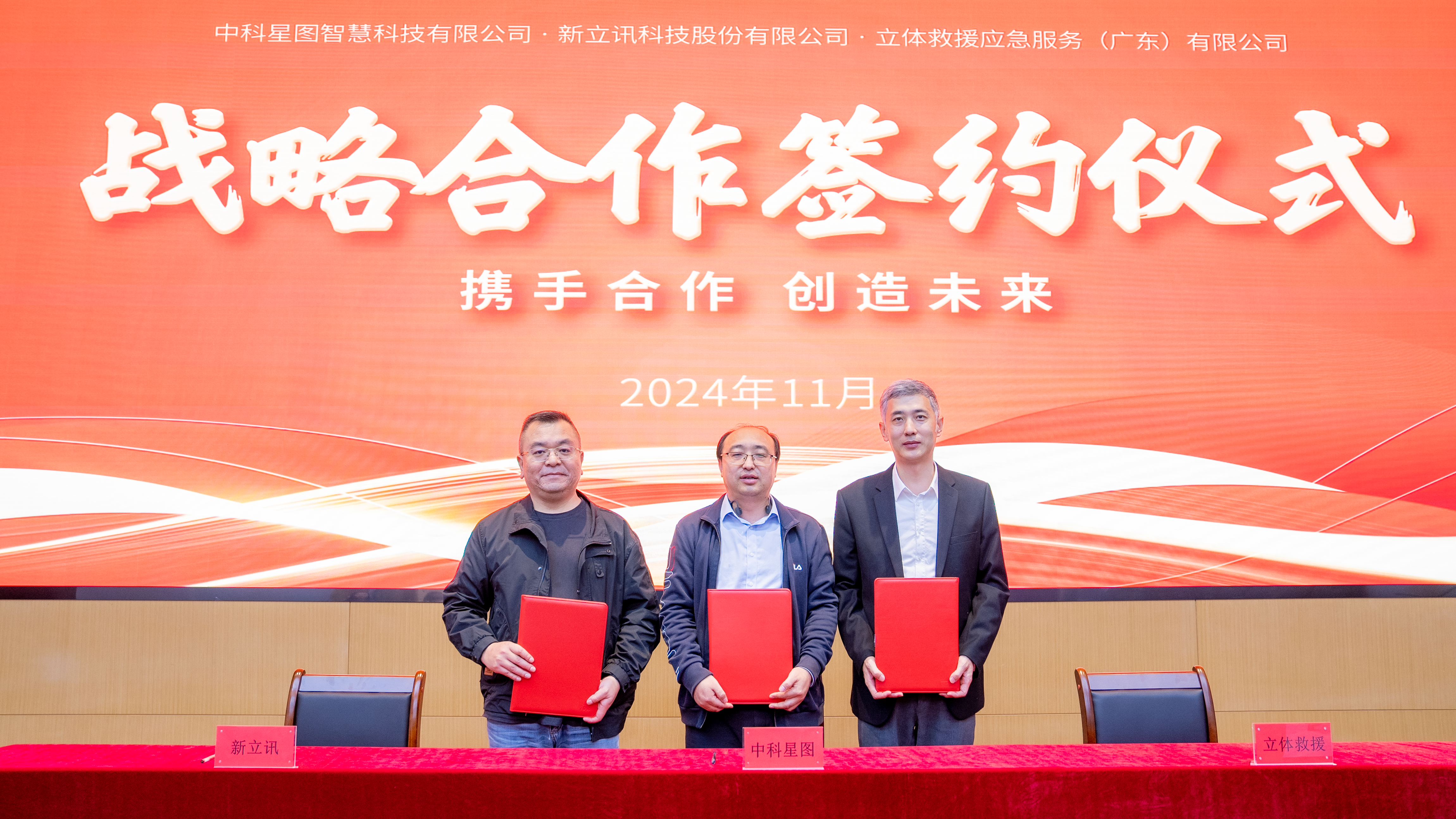 新立訊集團、中科星圖智慧和立體救援應急服務(廣東)有限公司(簡稱立體救援(廣東))三方共同簽署戰略合作協議,進一步加強三方在超算中心建設運營、低空飛行經濟建設運營以及常規軟件開發等領域內的協同合作發展。