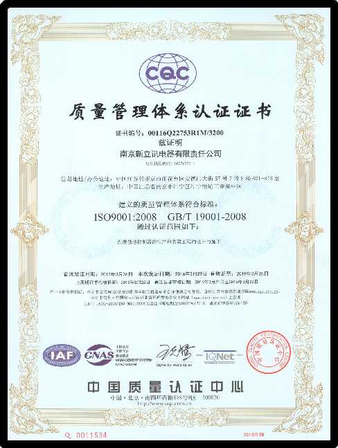 質(zhì)量管理體系的建立和貫徹運(yùn)行,將有助于新立訊完善管理流程,提高運(yùn)營(yíng)效率,也為進(jìn)一步的市場(chǎng)開(kāi)拓提供了強(qiáng)有力的支撐,同時(shí)綜合提升新立訊企業(yè)整體形象及核心競(jìng)爭(zhēng)力。至此,新立訊企業(yè)主要經(jīng)營(yíng)項(xiàng),均通過(guò)ISO質(zhì)量體系認(rèn)證。