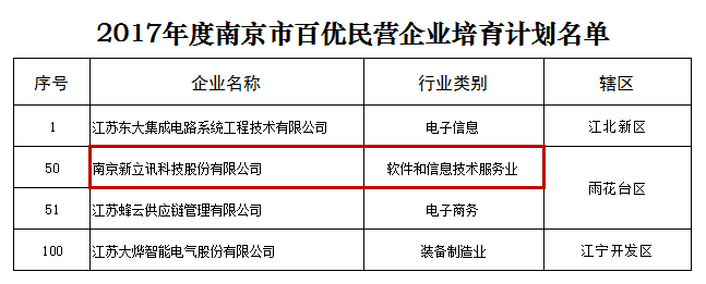 日前,南京市經(jīng)濟(jì)和信息化委員會(huì)發(fā)文(寧經(jīng)信民營[2017]415號),公布了南京市最新“百優(yōu)民營企業(yè)培育計(jì)劃”名單,南京新立訊科技股份有限公司等一批優(yōu)秀民營企業(yè)榮譽(yù)入選“2017年度南京市百優(yōu)民營企業(yè)培育計(jì)劃”,并榮獲“2017年度南京市百優(yōu)民營企業(yè)”。