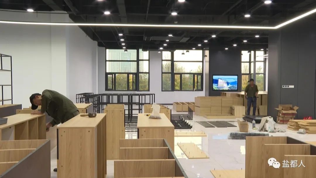 10月21日上午在位于城西南現代物流園的,華東農產品交易中心,施工人員正在對,直播間和貨物展架進行最后的布置,力爭在本月底正式對外運營