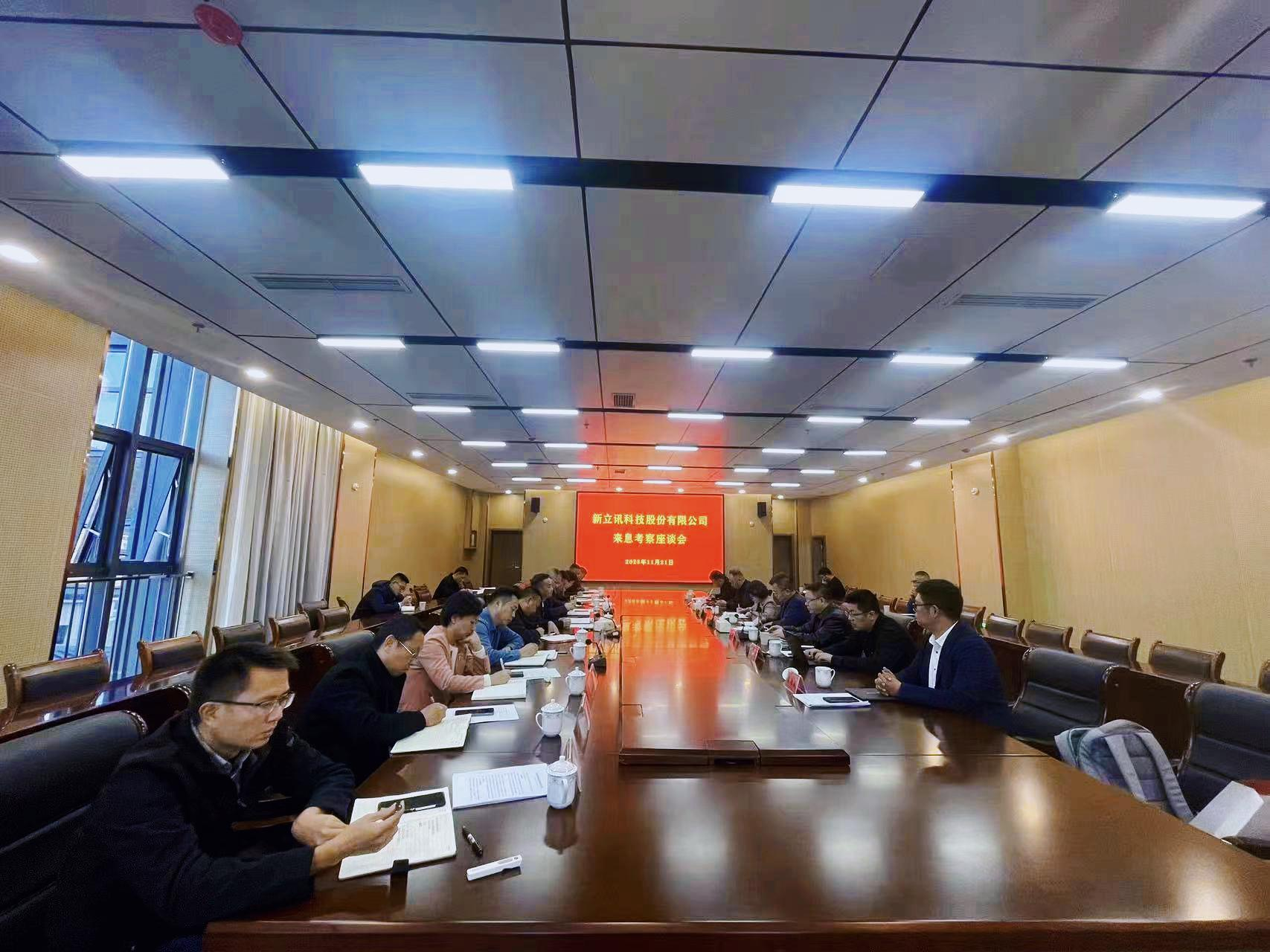 2023年11月22日,新立訊董事長兼總經理毛霖、副總經理李偉等一行赴息烽縣進行實地考察,息烽縣委副書記、縣長何明,副縣長方超,息烽經開區管委會副主任、縣工業和信息化局局長趙坤倫,縣政府辦公室主任楊永春,縣委督辦督查局局長、縣商務局負責人陳舟游,縣農業農村局局長曹廷友,縣投促局局長曾元媛等領導陪同考察并座談。
