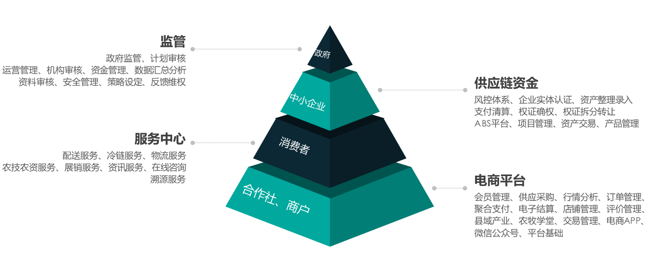 農產業交易互聯網平臺包含了農副產品交易云平臺,數據中臺、以及鑒真溯源云平臺,三位一體形成閉...